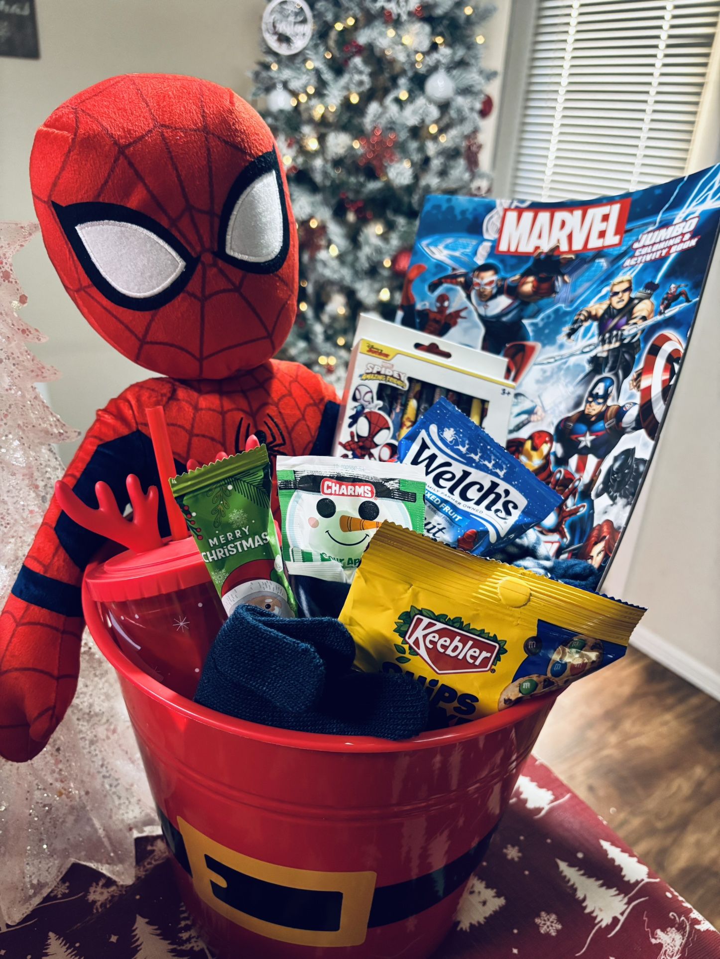 Last minute christmas baskets ready for pick up, have a few other characters, check out my page :) Can deliver depending on area. $25 each 🎄Includes, plushie toy about 17’ , throw blanket, gloves, Xmas cup, coloring book with crayons, and some treats. You can have them in baskets or if you prefer in reusable gift bag with or without treats. Price will change thereafter.