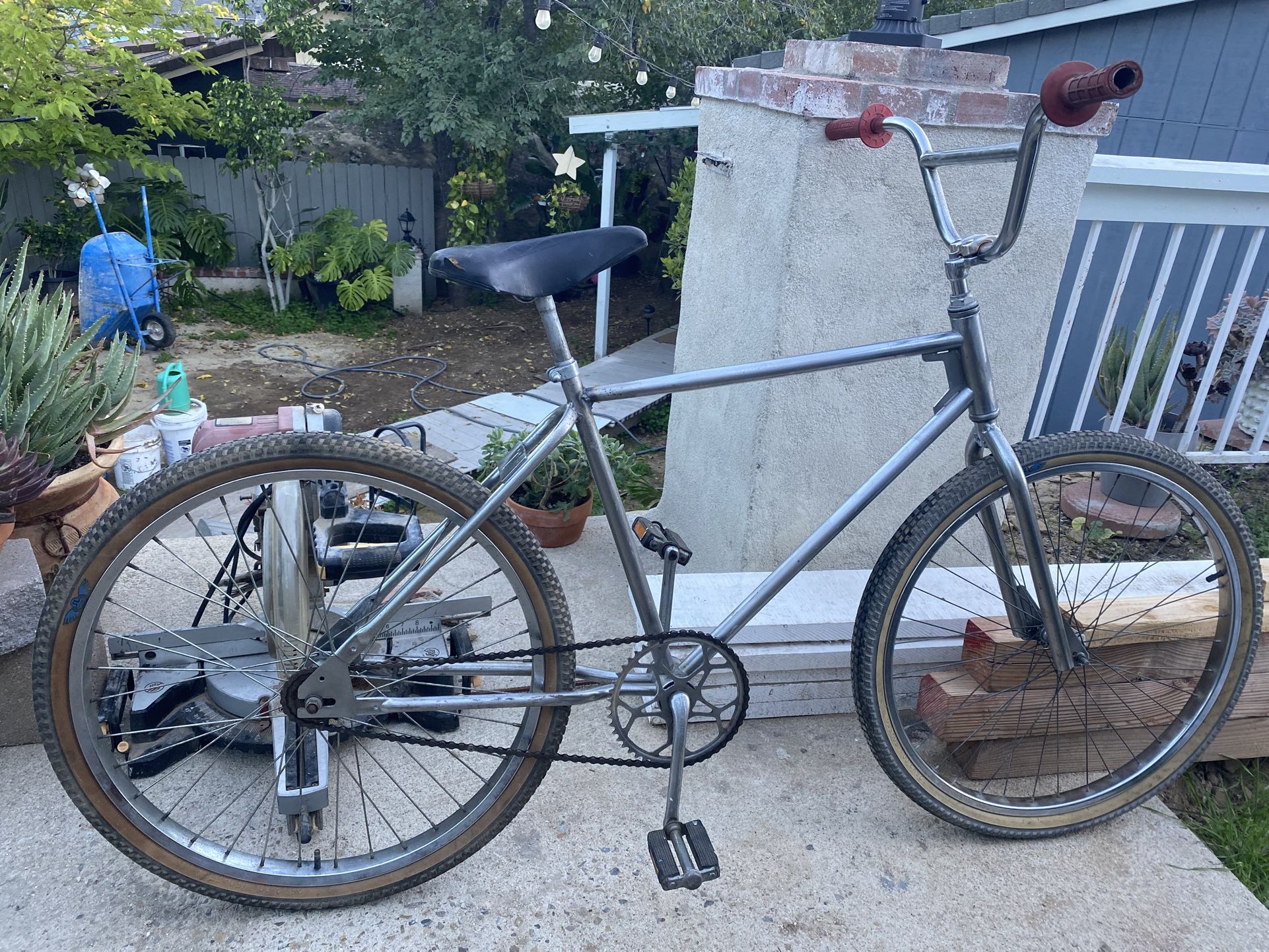 Bitchin 1980 murray bmx cruiser Chrome steel frame and fork 26" steel wheels coaster brake SE gumwall tires Single crank with schwinn type ring Vintage diamond seat Forged stem Chrome bars - that's about it. So simple. Yes its heavy No they dont make them anymore Yes Youll be awesome if you get it No i wont trade it for an xbox or a big bag of weed. Bmx, 4130 subway series etc etc