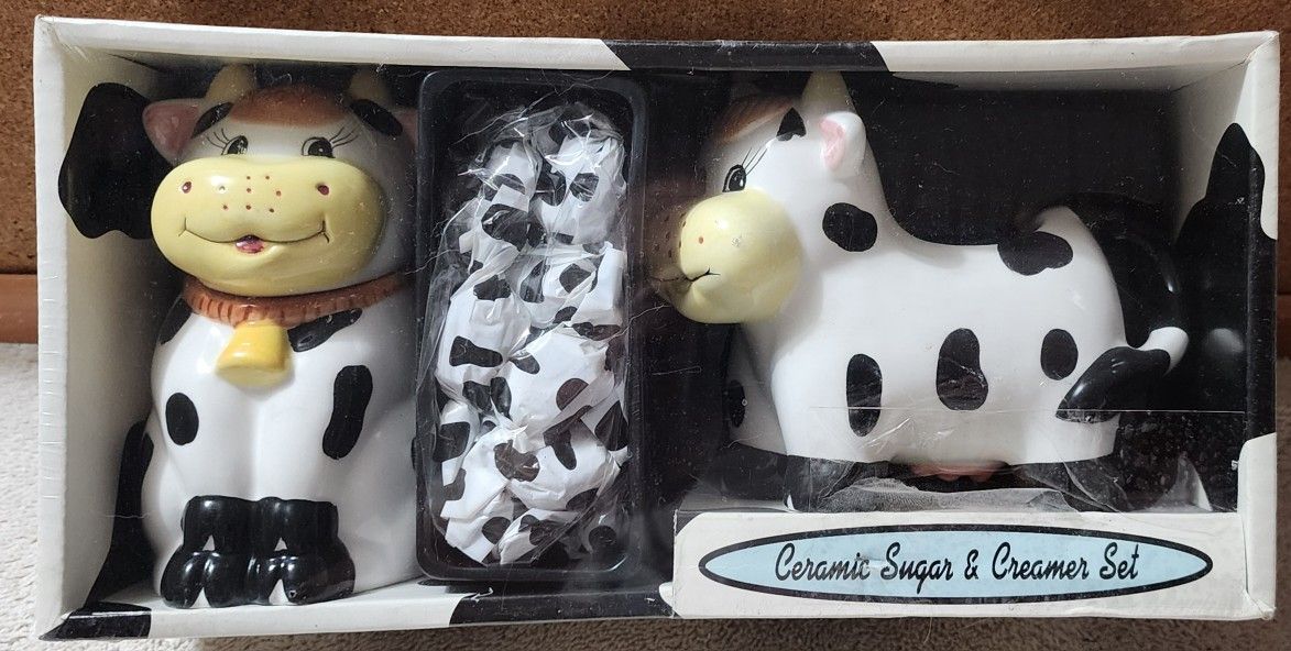 Ceramic Cow Themed Sugar And Creamer Set From Houston Harvest Never Opened!