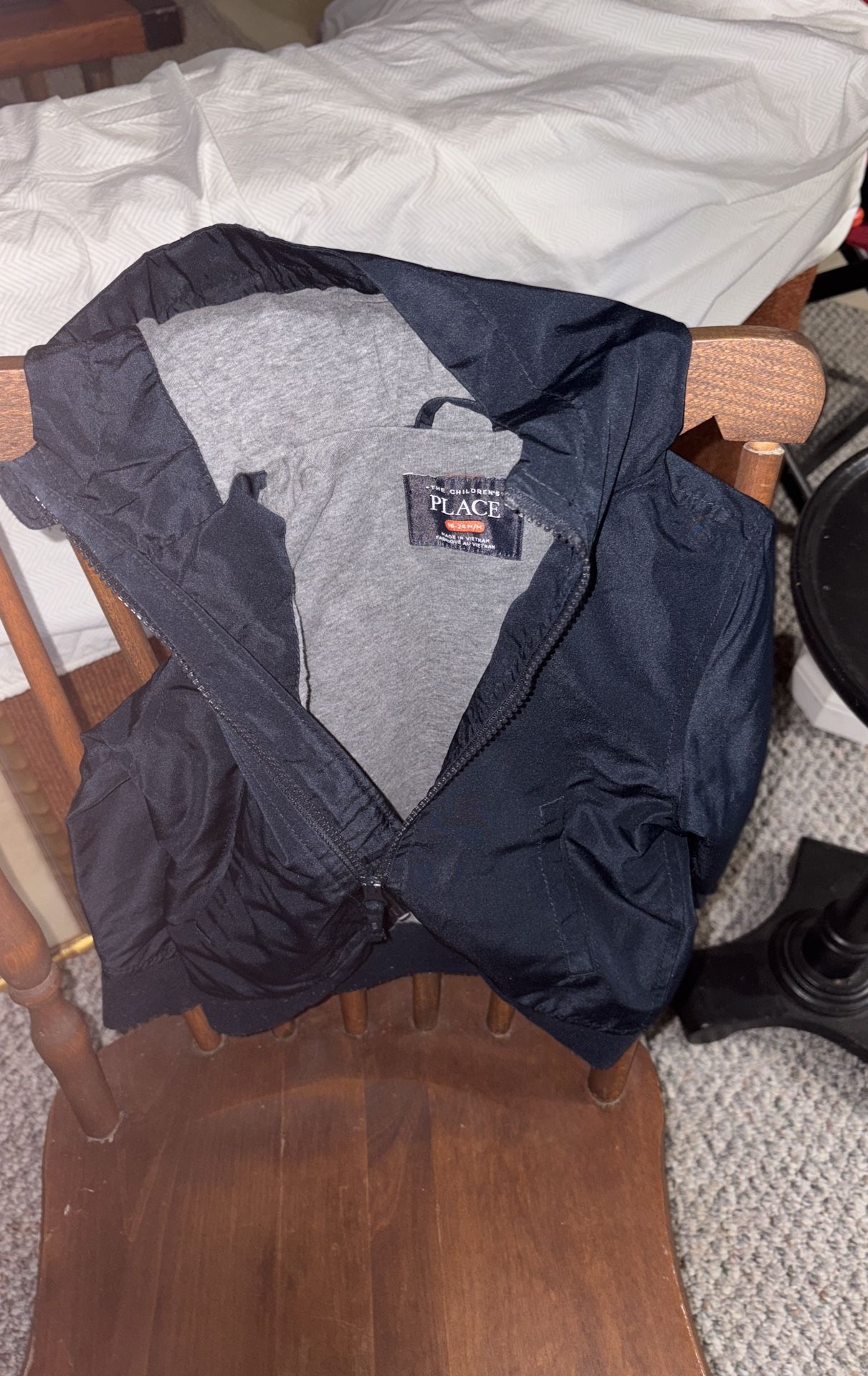 Blue rain jacket Flannel lined gray Hood lined with flannel Size 28 to 34 mo Only worn a few times