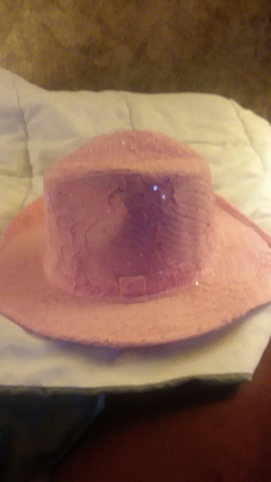 Never worn, pink cowgirl style hat with multiple sized mirrored sequins scattered over the surface.
