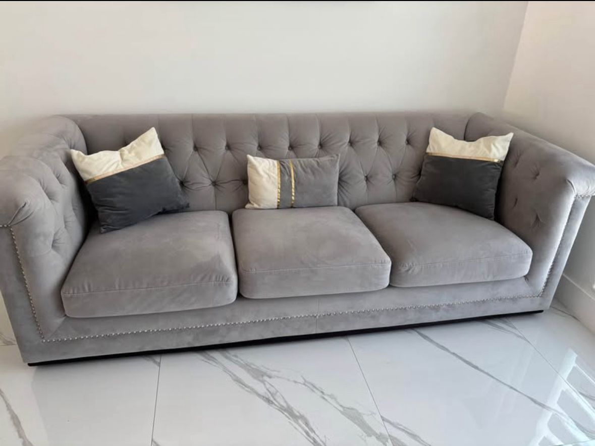 2 Sofás in great condition color grey and the pillows are included . 2 Sofas en buen estados color gris y los cojines incluidos. Not dirty just the material No sucio Nama el material