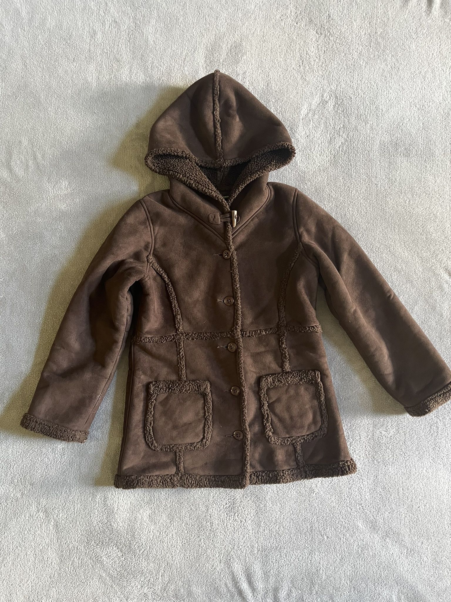 LL Bean Faux Suede Fur Coat Toggle Hooded Sherpa Shearling Girls 10/12, Brown Good Condition-no stains, holes or rips Please see all photos for details. - Smoke Free Environment -Material: see photos -Colors may slightly vary from photography lighting CASH ONLY PICK UP ONLY AA
