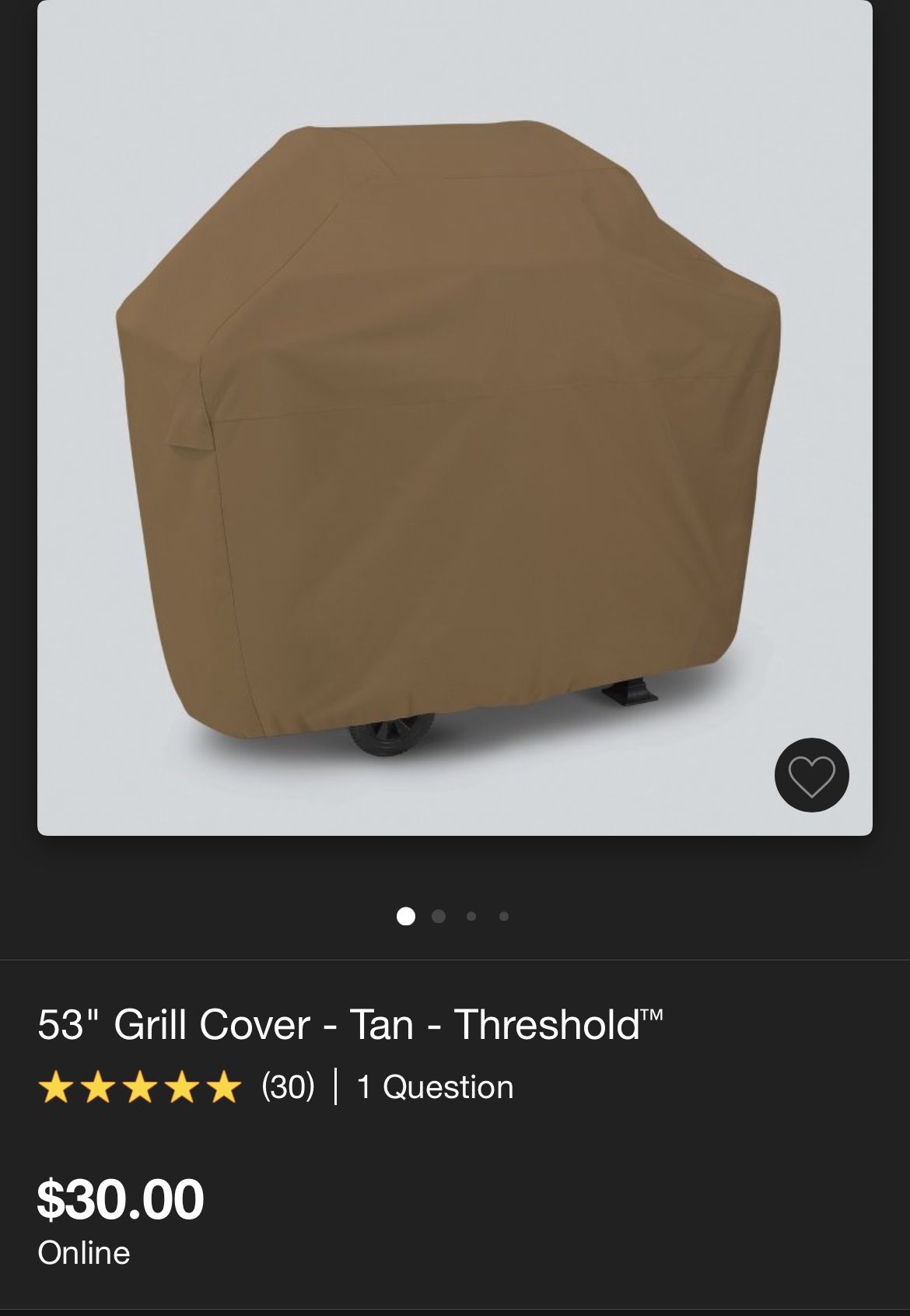Threshold BBQ grill cover in tan. We bought it but decided to leave our grill in a covered area instead so it’s never been used. Pick up in Puyallup.