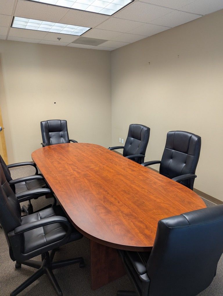 Conference table with 6 chairs. Looks brand new