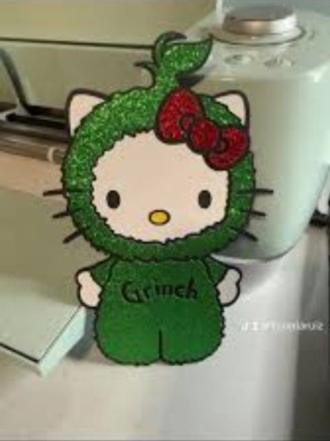 Grinch hello Kitty Topper Perfect for FLOWER ARRANGEMENTS. 6" I HAVE DIFFERENT CHRISTMAS HELLO KITTY DESIGNS
