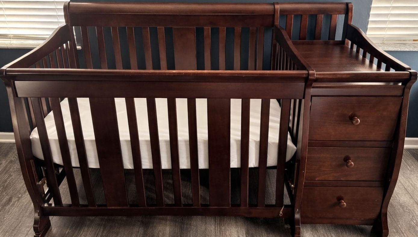 Similar to picture-used but good condition. Includes mattress and changing pad. Already disassembled and ready for pick up.