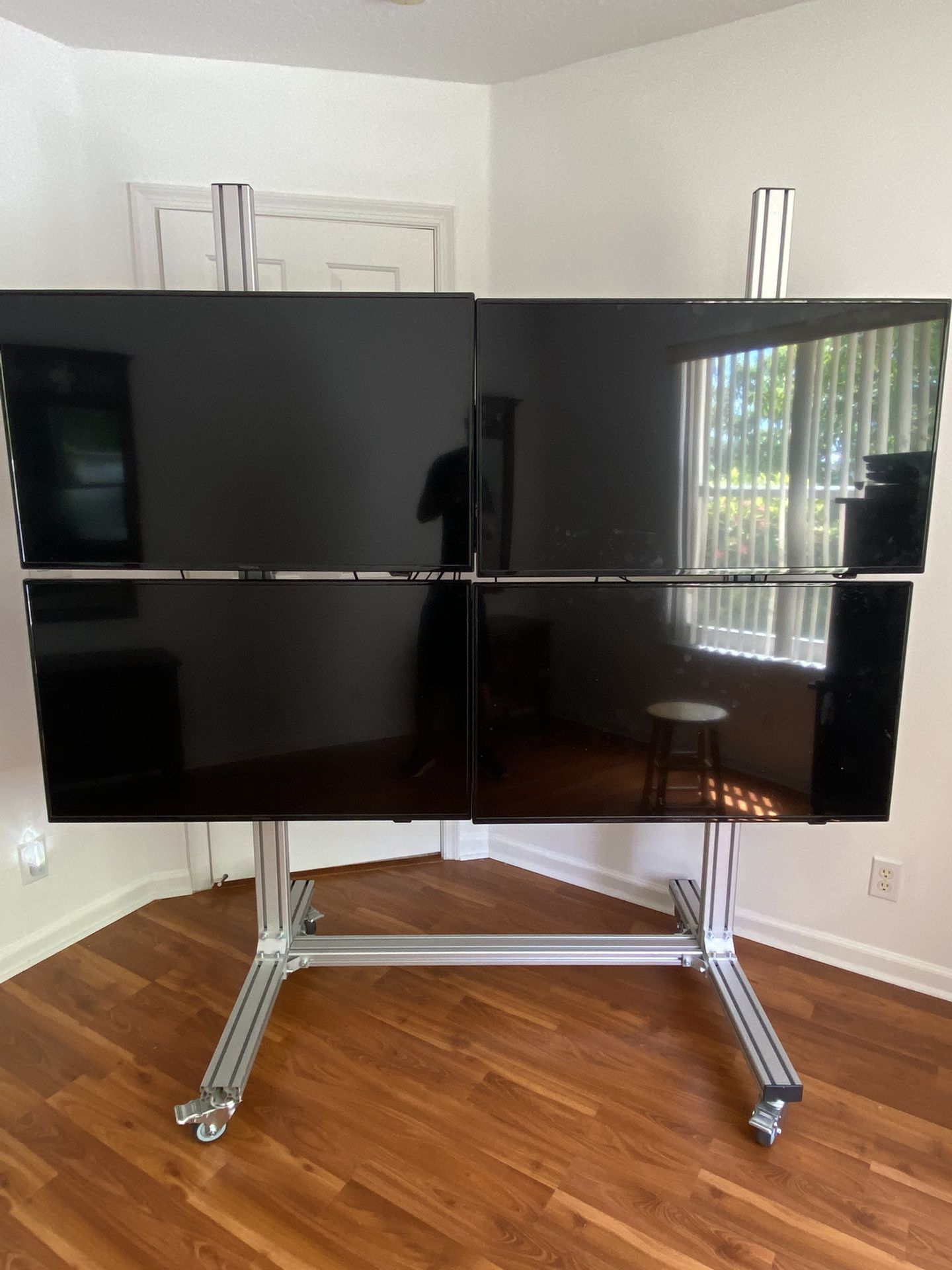 There are 7 TV’s available, along with the rolling TV mount. Price shown is per TV