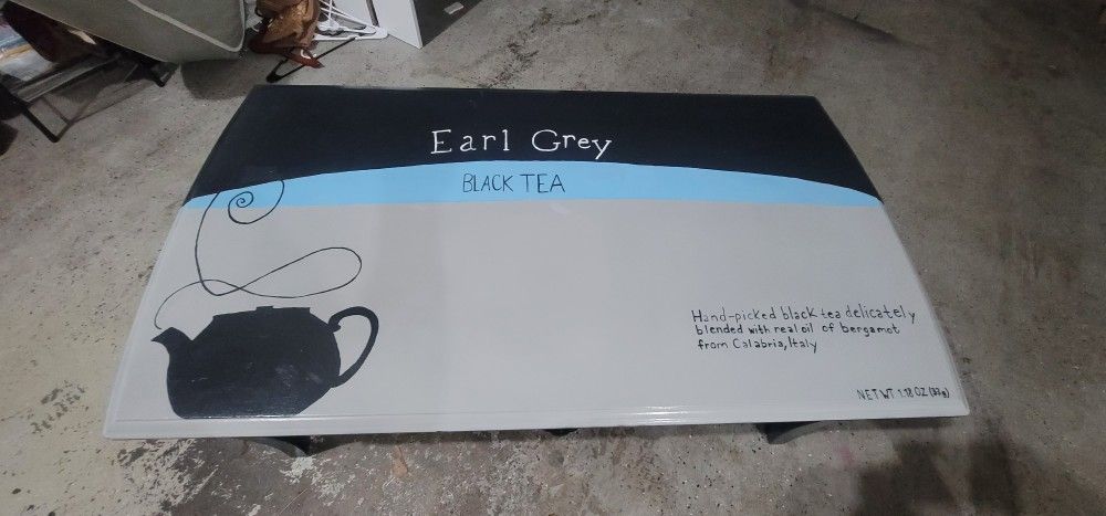 I'm selling a wooded custom painted coffee table...now a tea table "Earl Gray" Black Tea painted by my daughter. With a drawer & a bottom shelf. Measurements ▶️ 47 inches wide..18 inches tall Like New....asking price $65