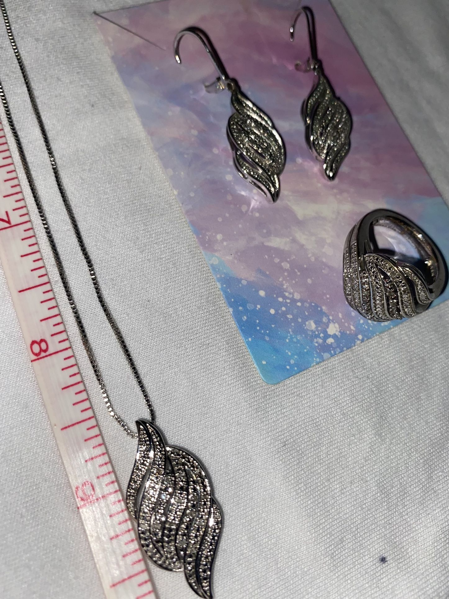 KRN BR Baguette Swirl Silver Tone Gemstone. Costume Jewelry Set