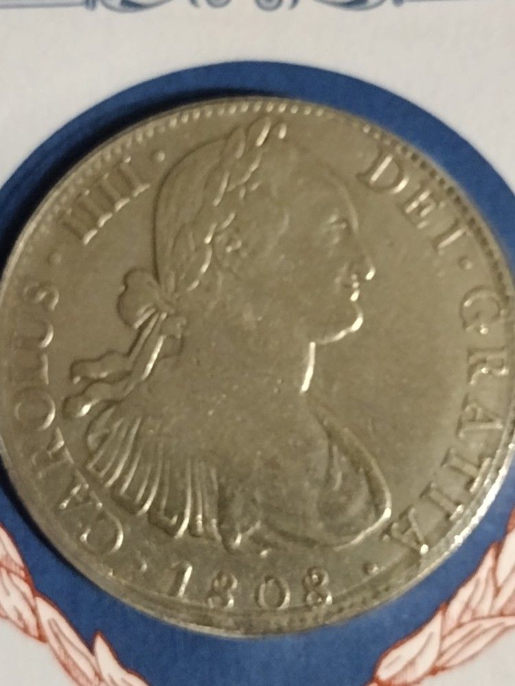 I have in excellent conditions this vintage silver coin from 1808. This is a 8 reales coin. Is a Spanish coin used in several countries. And also. Used for the first time. In United States. Before they introduce there own. Currency this is a collection coin