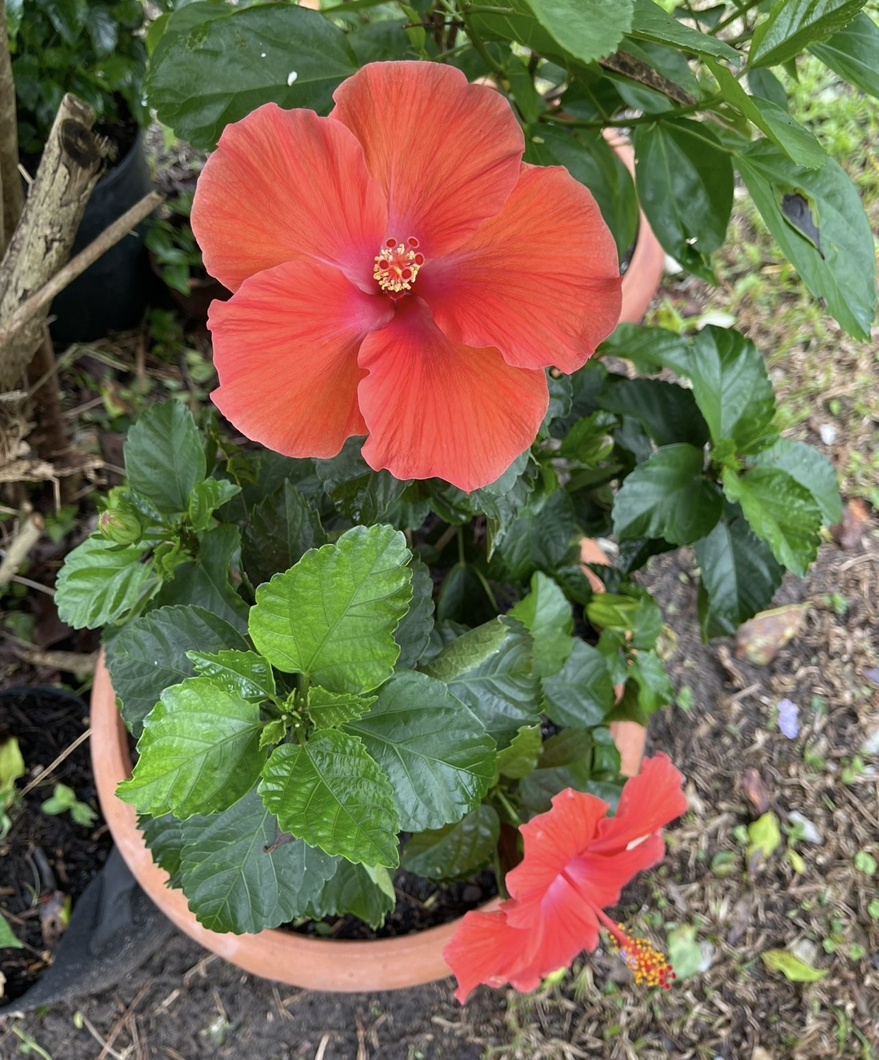 Rare! reddish orange hibiscus cuttings! You will receive 3 cuttings, dipped in rooting hormone for at home planting. Cuttings take really well!