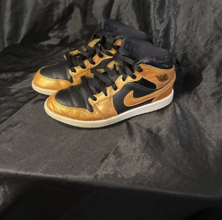 Nike Air Jordan 1 Mid SE Metallic Gold Black Basketball Shoes kid size 3 No box
