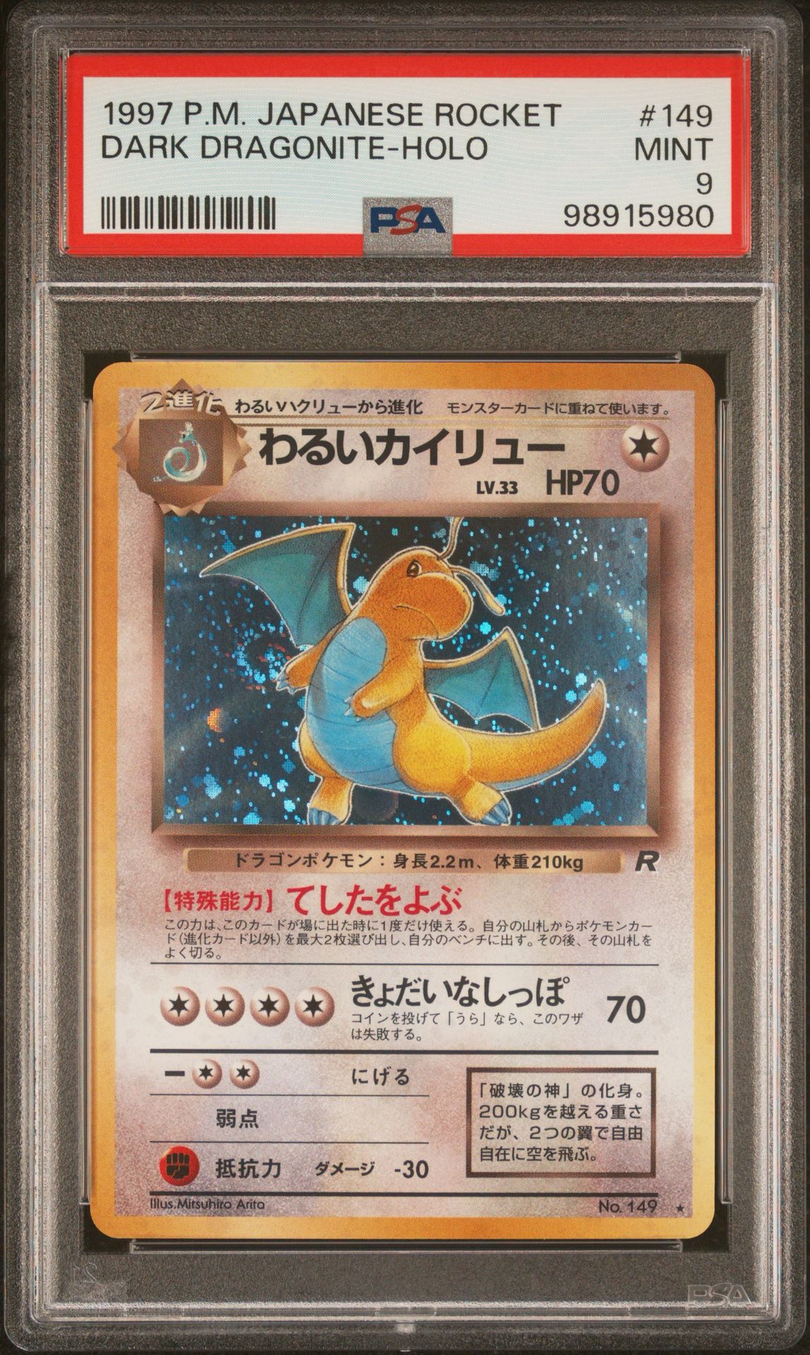 PSA 9 DARK DRAGONITE ROCKET GANG HOLO GOD SWIRL - CLEAN 🧼 JAPANESE VINTAGE