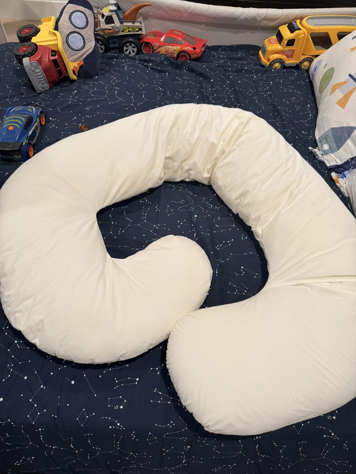 Selling a very comfortable Leachco full-body maternity pillow in great condition. This pillow provides amazing support for your back, belly, and hips during pregnancy and can also be used for nursing or lounging after baby arrives. It really helped with sleep and reducing back and hip pain. .Comes from a clean, smoke-free home and has been well cared for. No stains or damage.