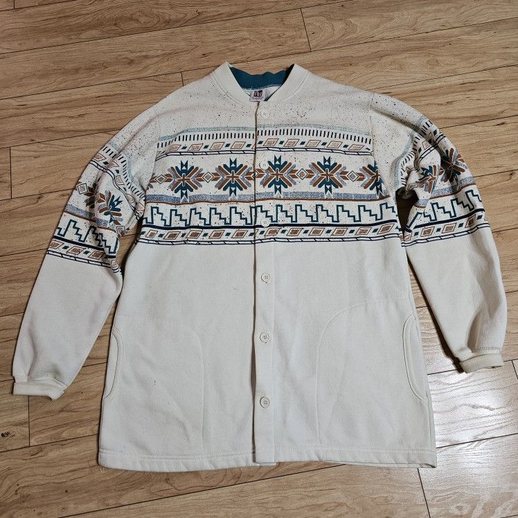 Vintage Art Unlimited Aztec Southwest Button Cardigan Tribal Brown Cream Teal Turquoise / Size XL