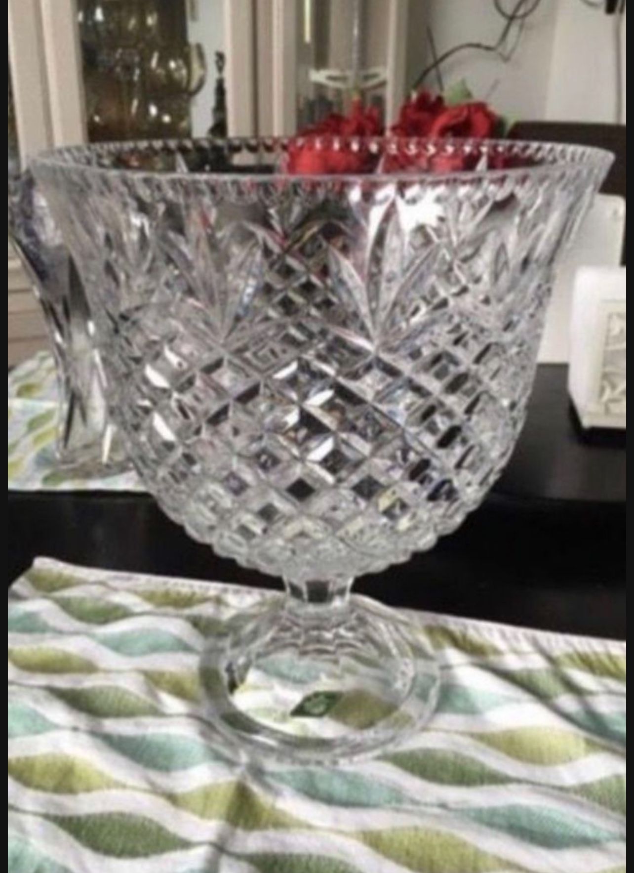 Big crystal cup, you can fill it with candies , chocolates, flowers or any idea. No chips no broken. 12.5 high x 10.5 diameter