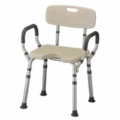 We love the Bath Seat with Arms and U-Shaped Cutout because it makes bathing very safe,comfortable and convenient. The padded arms help getting on and off the seat, the back provides comfortable support, and the u-shaped cutout aids in cleaning. Don’t forget the 84” hand held shower and bath mat for the ultimate bathing experience! Weight Cap (lbs): 300 Item 9037 Seat Height (inches): 16" - 21" Seat Dimensions (inches): 15.75"w x 13"d Overall Weight (lbs): 7 Leg Footprint High (inches): 19.5"w x 18.5"d Leg Footprint Low (inches): 18.75"x 17.25"d