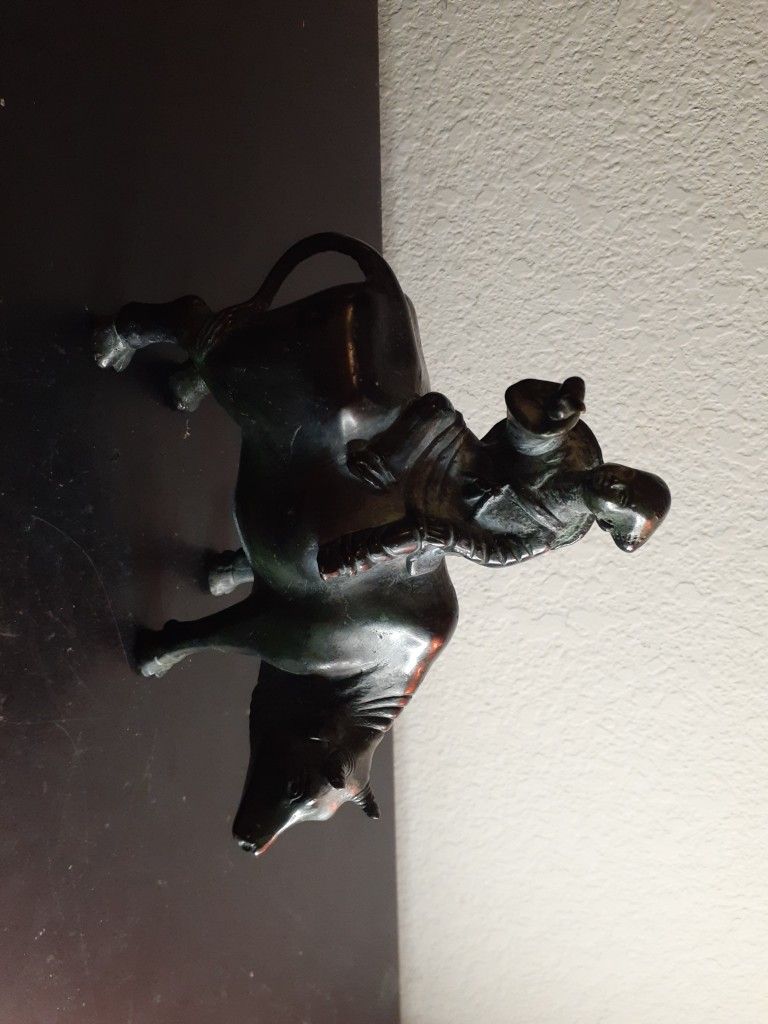 EXQUISITE Antique Circa 1920 Chinese 7" CHILD RIDING ON BULL Bronze Sculpture. Procured at a high end Asian Antiques auction BOX 36