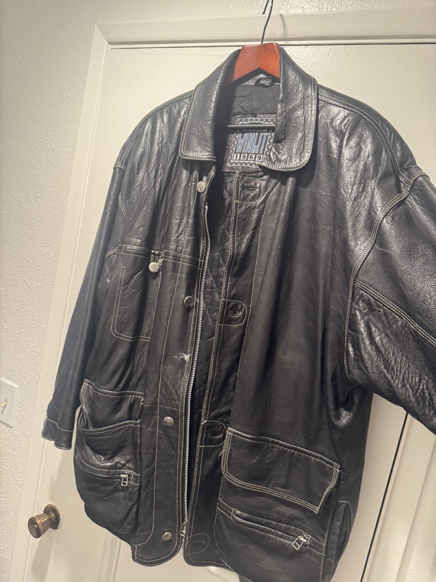 Awesome black men’s leather jacket - E-40 wore this same one -2XL