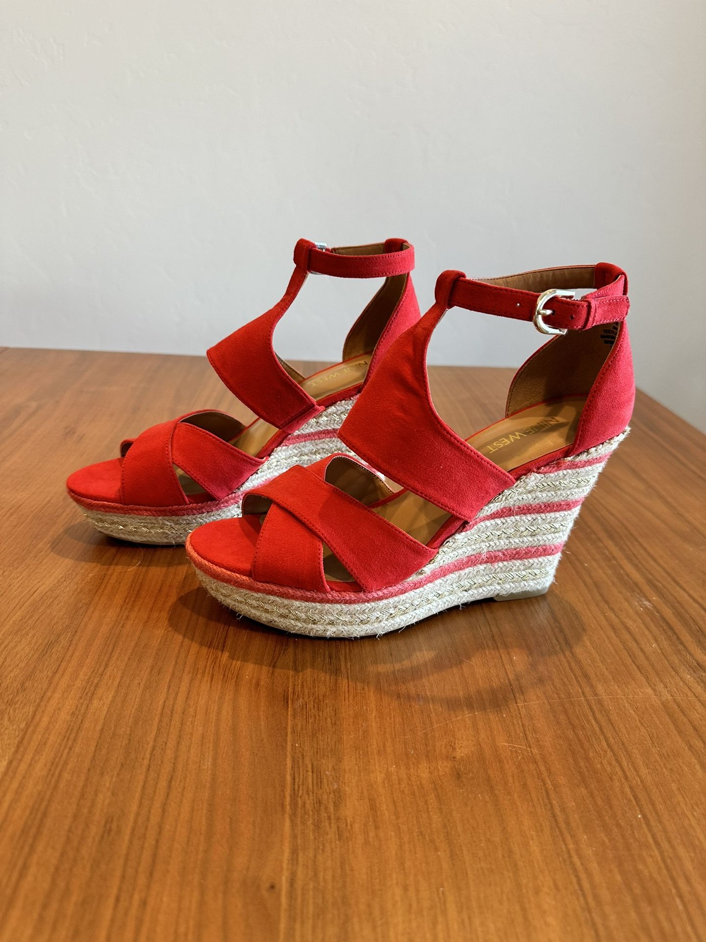 Nine West espadrille wedges, red suede, size 7.5m, never worn