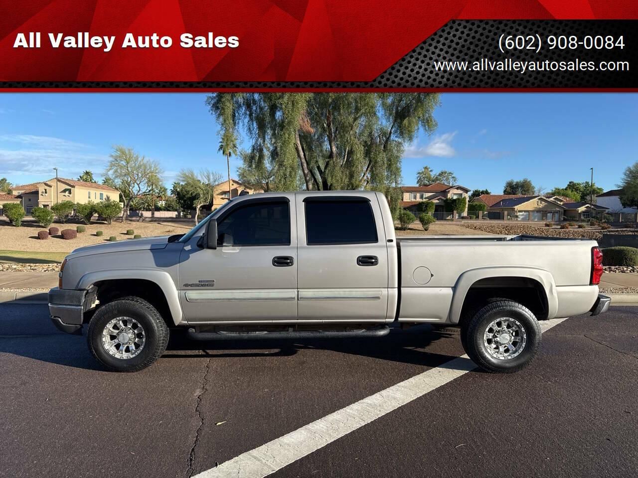 2006 Chevrolet Silverado 2500hd, LT, short bed, 2WD, crew cab, LBZ, 6.6 liter Duramax Diesel, 6sp Allison Auto Transmission, 260k miles, loaded with: power windows, tow mirrors, tinted windows, steering wheel controls, cover, power seats, cold ac, Stereo system, with like new tires on aluminum wheels, tow package, black Interior, Truck runs Fantastic! FINANCING AVAILABLE FOR ALL CREDIT TYPES! GOOD CREDIT, BAD CREDIT, LOW DOWN PAYMENTS ON OAC, EASY FINANCING TERMS! Appointments at the Cave Creek location and walk ins welcome. Give us a call to have any of your questions answered or to set up a test drive (602) 908-0084. For FINANCING options or to get pre-approved for your new truck just go to our website π°π°π°NEED FINANCING? WE HAVE GOT THE RIGHT LOAN FOR YOU. π°π° β LOW DOWN PAYMENTS β BAD CREDIT Auto Loans β NO CREDIT Auto Loans β FIRST TIME BUYERS Auto Loans β WE WORK WITH MULTIPLE LENDERS TO COVER ALL CREDIT TYPES πππYOU'RE APPROVED πππ. π»π»π»DONT HESITATE, GET FINANCED TODAY AND DRIVE YOUR NEW VEHICLE HOME TODAY! π»π»π» 100% APPROVAL OAC! Our Guarantee in no matter your financial situation, you will drive off the lot in a new vehicle, today (OAC). β Great Credit β Bad Credit β No Credit β Repossession β Bankruptcy β Foreclosure β SSI β Disability β Child Support β Passport β Mexico Driver License β DUI ββALL ARE OK. YOU'RE APPROVED ββ β ALL OF OUR VEHICLES ARE CLEAN TITLE VEHICLES β MOST OF OUR VEHICLES ARE APPROVED FOR EXTENDED WARRANTIES β TRADE-INS ARE WELCOME, SO BRING IT IN FOR A NO HASSLE APPRAISAL Disclaimer: Certain vehicles listed may not be available. Prices are subject to change without notice. Additionally, Government Fees and Taxes, Finance Charge may apply. Subject to prior sale. The price listed for this vehicle does not include charges such as: License, Title, Registration Fees, Depending, where you live State or Local Taxes, Finance Charges, Optional Credit or Liability Insurance, Delivery Fee, and State Documentary Service Fee. The Dealership makes no representations, expressed or implied, to any actual or prospective purchaser or owner of this vehicle as to the existence, ownership, accuracy, description or condition of this vehicle's listed equipment, accessories, price or any warranties. Vehicle Pricing - Where permitted by law, all dealer fees and amounts must be disclosed in a clear, conspicuous and legible fashion. There are no exclusions. The Dealership is not responsible for typographical errors in price or equipment listed. Any and all differences must be addressed prior to the sale of this vehicle. All vehicle fluids are checked and filled prior to sell. All Valley Auto Sales has been working hard to bring Arizona one of the finest selections of pre-owned and certified used vehicles. Stop by today to browse our inventory of quality cars, hard-working pickups, and family-friendly vans and SUVs.