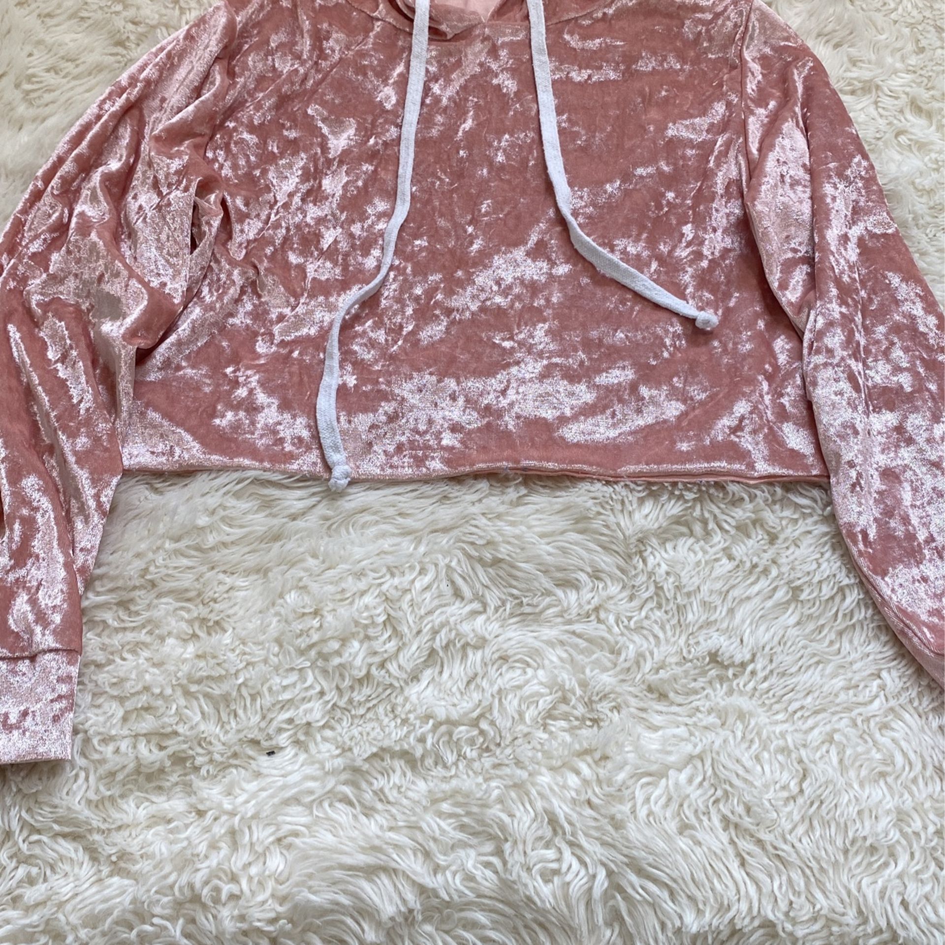 Pink Velvet Cropped Hoodie