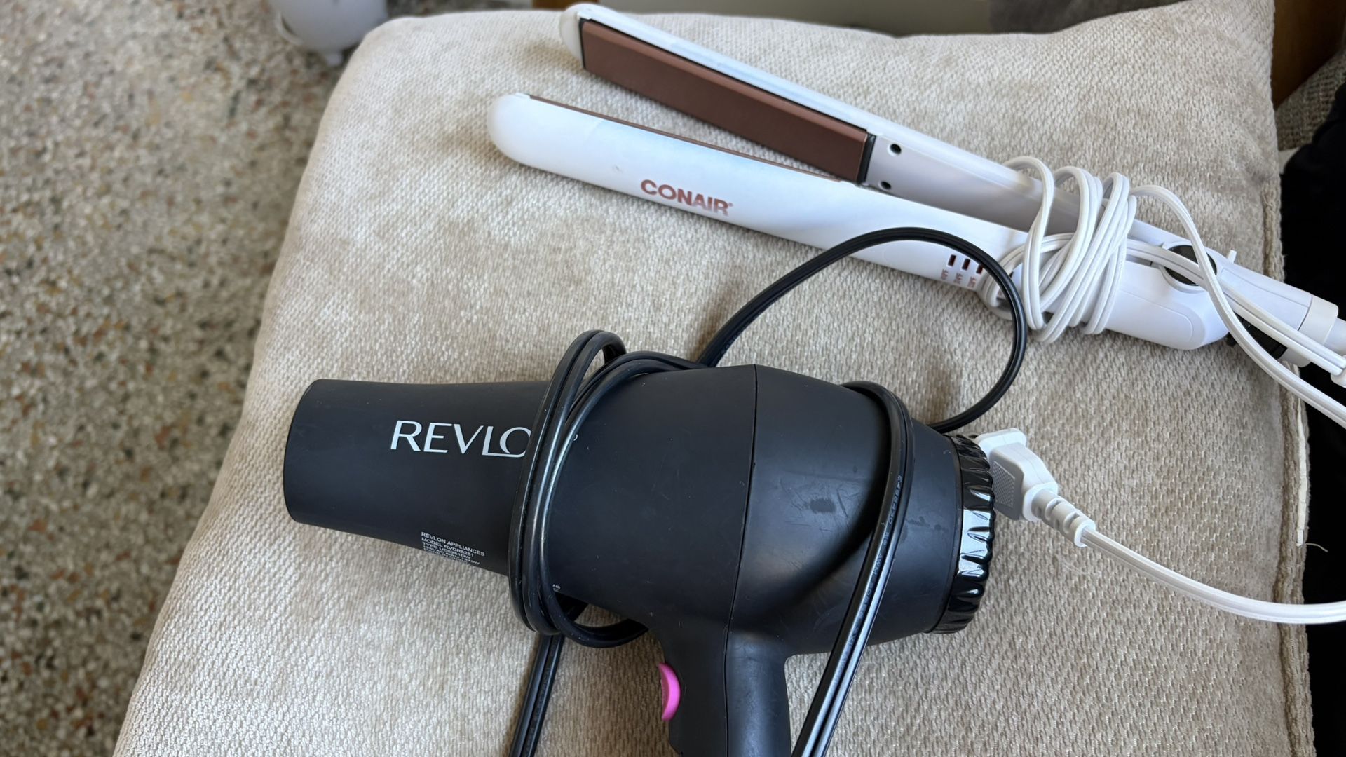 •Revlon hair dryer •Conair flat iron (hair straightener) Both $20