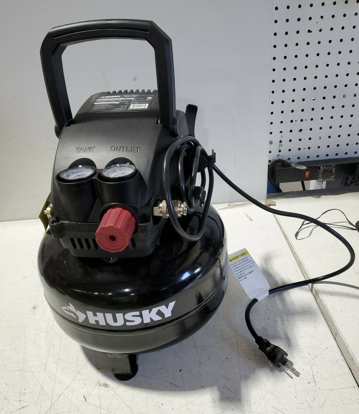 Husky 3 Gal. 120 PSI Portable Electric Oil-Free Pancake Air Compressor with Fold Down Handle and 1-Quick Coupler. Like New