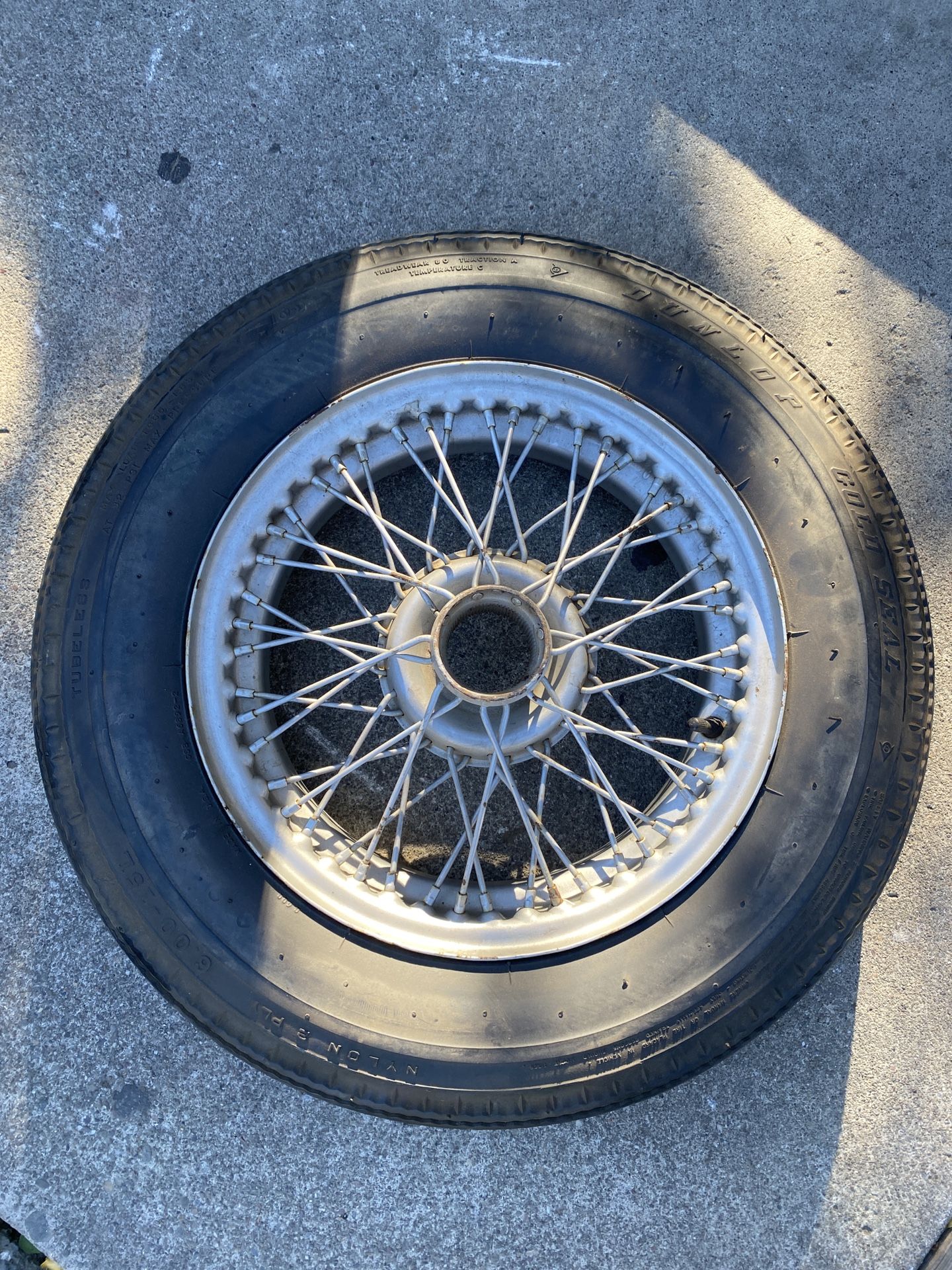 A set of MG, Austin Healy Wheels Original tires, No cracks, Good thread all five Vintage Wheels! Offer up