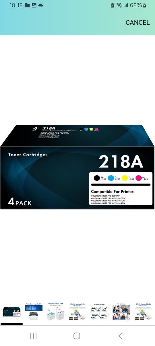 218A Toner Cartridges 4 Pack Pro MFP 3301fdw 3201dw Toner Compatible for HP 218A W2180A 218X W2180X 218 for Color Laserjet Pro MFP 3(contact info removed)fdw 3201dw 3301sdw 3301cdw Printer Ink (with Chip) New in box Retails $313
