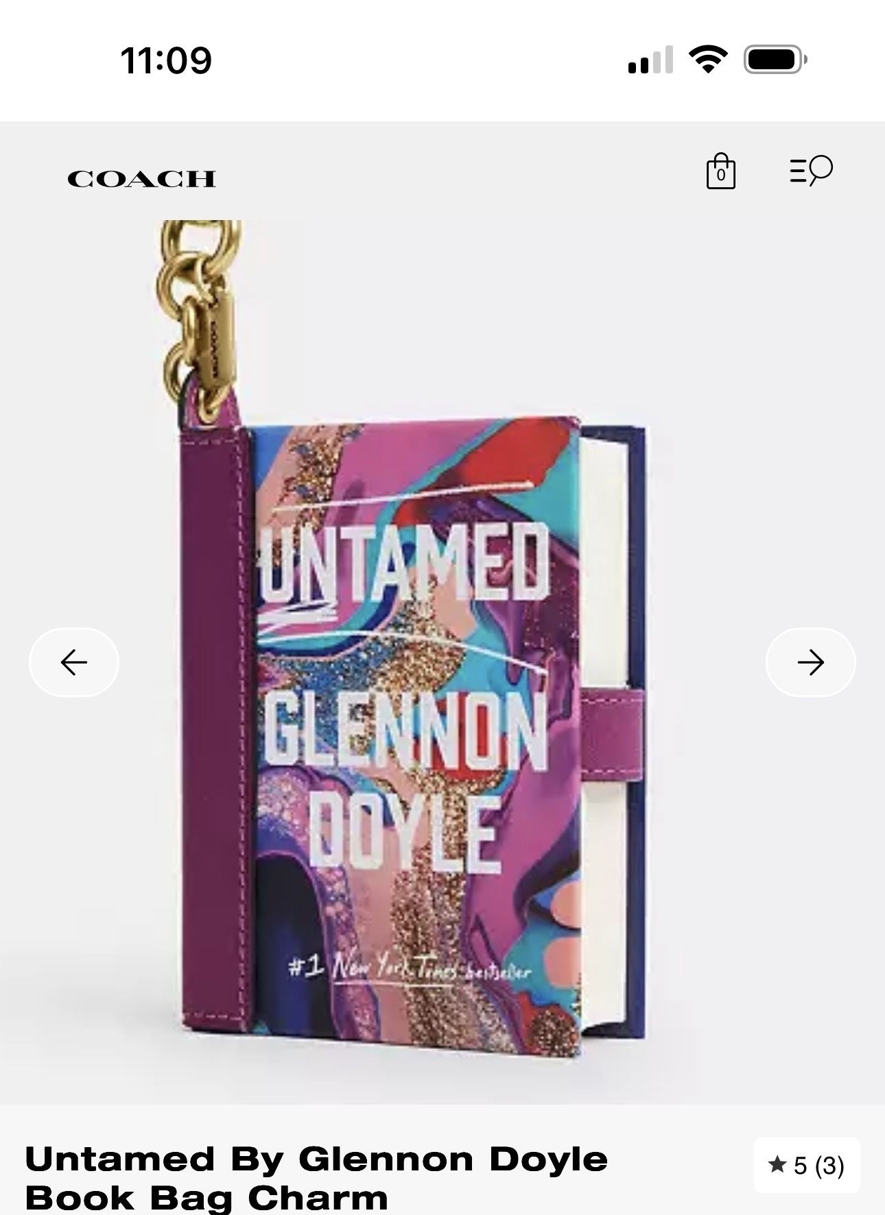 NWT Coach Untamed by Glennon Doyle Book Bag Charm