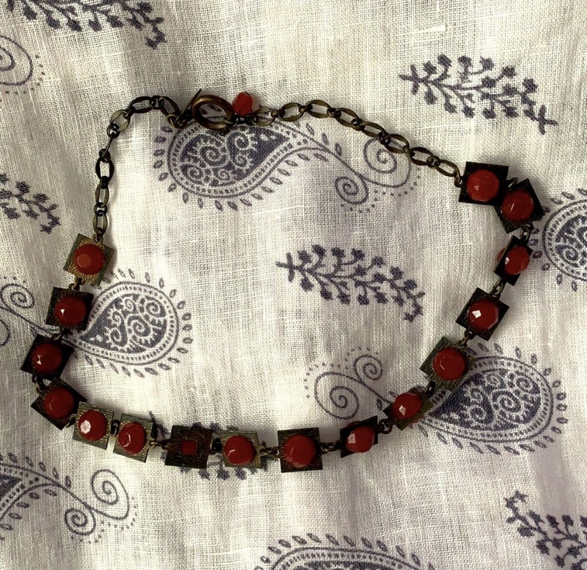 Beaded Red Necklace. Metal is rusty and has scratches. Please review the photos carefully before purchasing, or let me know if you have any questions.