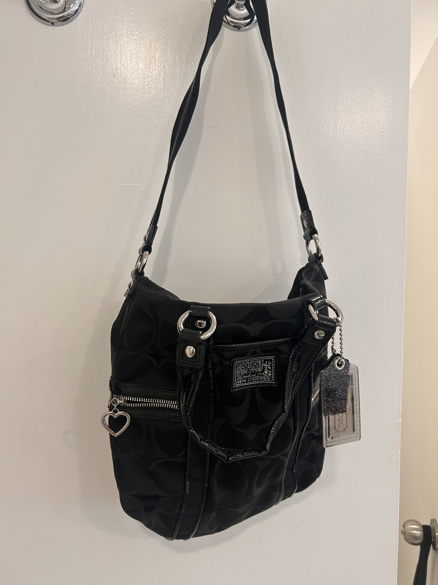 Coach Poppy Black Signature C Sateen Shoulder Crossbody