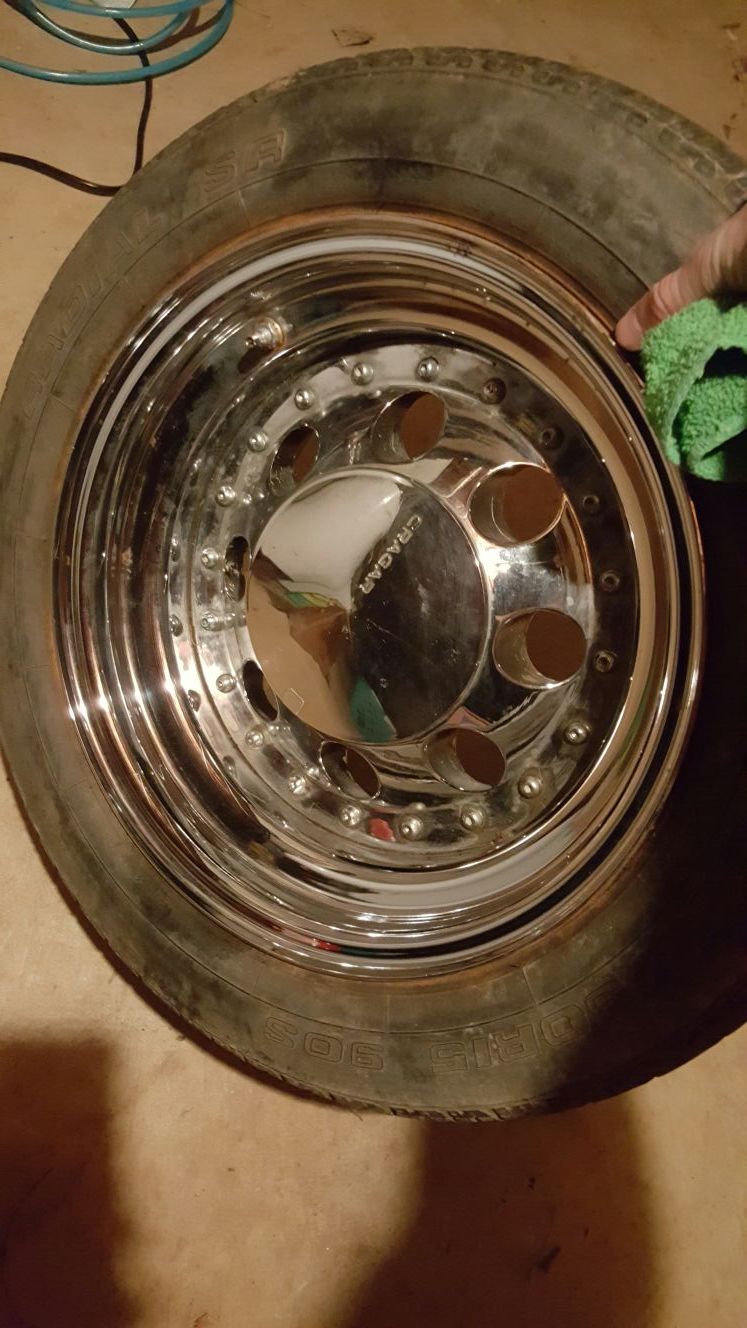 I have a nice set of cregar wheels they look good and not curbed at all will clean up nice they are 15s on back and 14s on front they 5x4.75 lug pattern thanks asking 100