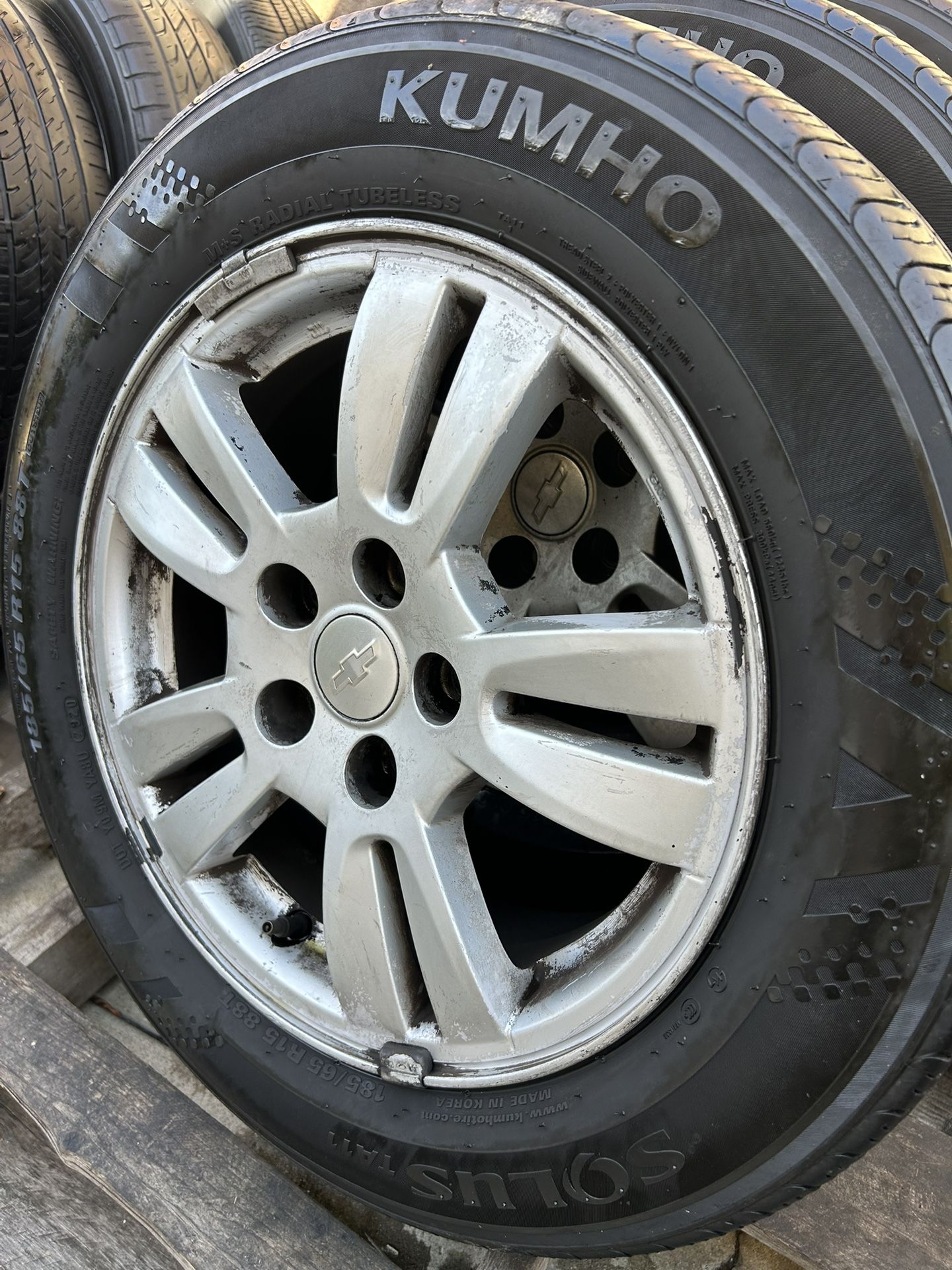 TIRES SIZE: 185 / 65 RIMS-15 5. LUGS. 5. BIRLOS BOLT PATTERNS: 5 X 105 FOUR TIRES: 90% GOOD CONDITION THE TIRES USED AND ARE BEING SOLD AS IS ALUMINUM ORIGINAL WHEELS CHEVROLET THE RIMS SCRATCHED FROM THE EDGES CASH ONLY