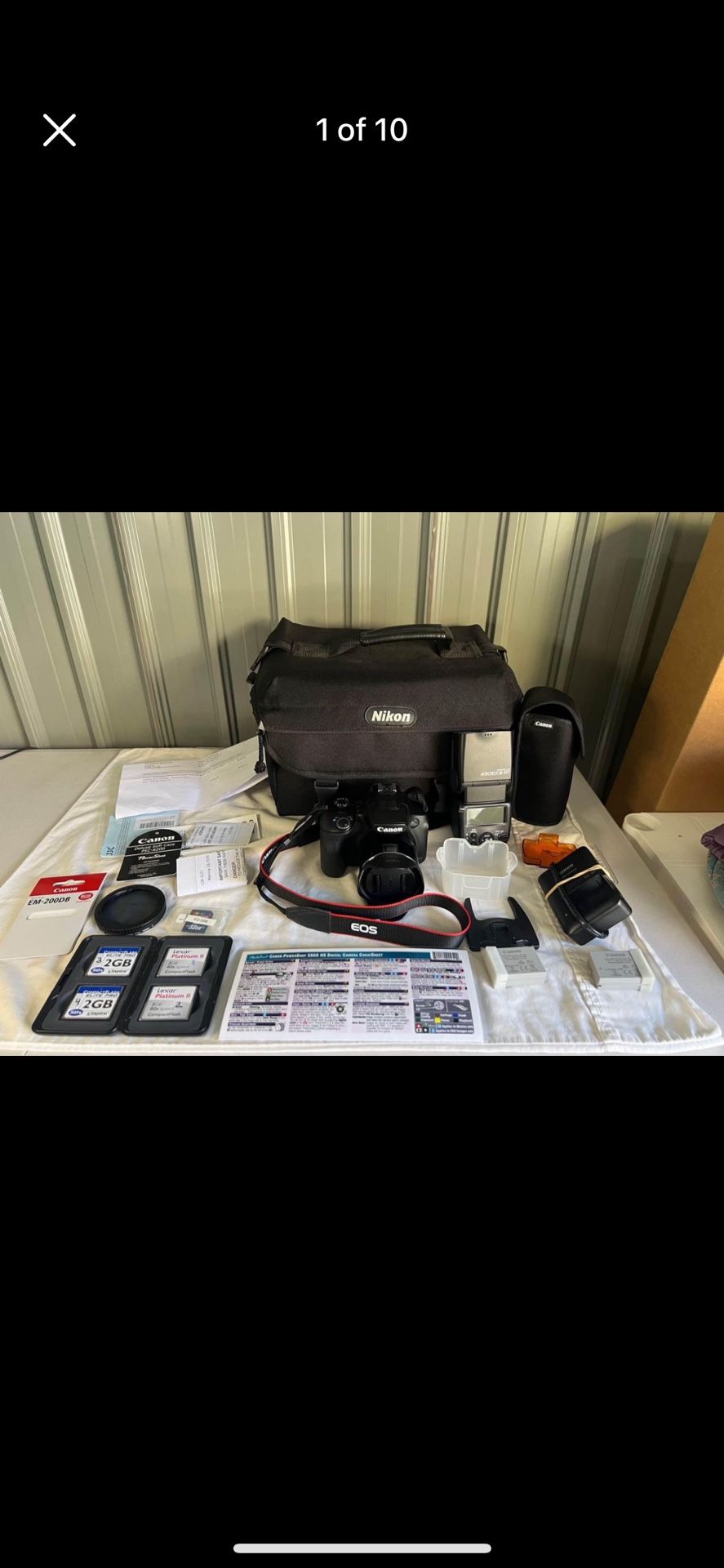 Huge lot purchased from the estate of a Hollywood filmmaker. All mint condition professionally cared for. Includes everything pictured - Canon sx60 hs power shot camera - Canon speedlite 430EX iii-rt flash, filters and OEM case - Hoya pro1 digital 67mm lens - 5 SD cards - 2 OEM Batteries - OEM Battery charger - paperwork , receipt, manual etc - OEM eos camera strap - Nikon case Capture stunning moments with this high-quality Canon PowerShot SX60 HS Camera. Equipped with a 16.1 MP maximum resolution and a 65x optical zoom, this digital SLR camera is perfect for photography enthusiasts. It comes in black color, with connectivity options like USB and HDMI. The camera features a lithium-ion battery that provides long-lasting power.
