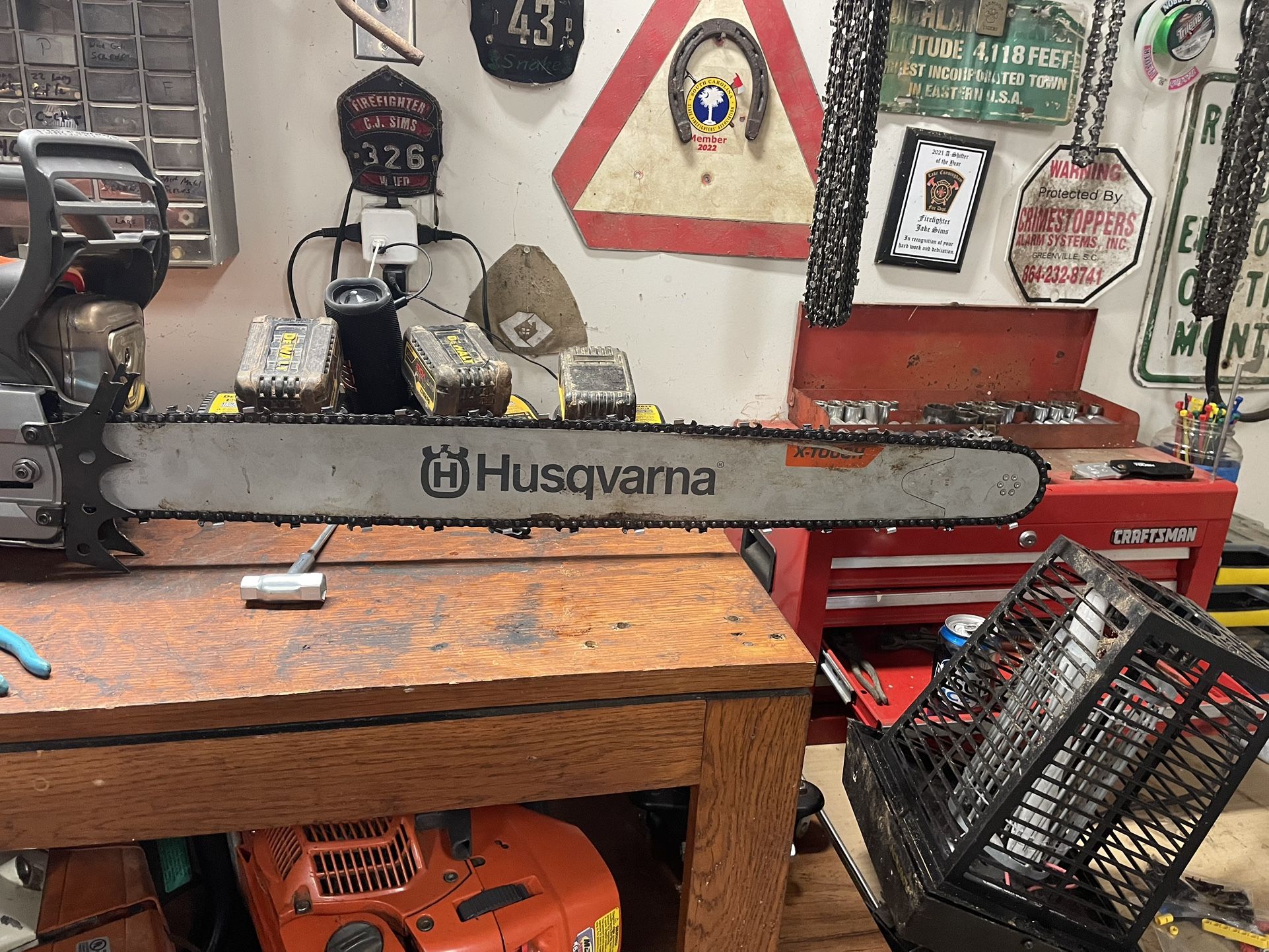 Bar came on saw brand new. Used it on one tree. Just don’t need one that big.