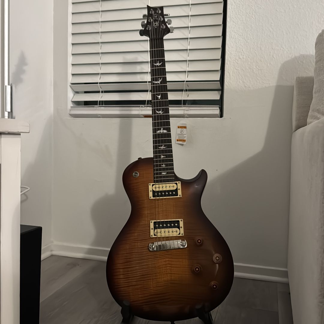 Selling my PRS SE 245 electric guitar. It’s in great condition and plays beautifully. This model is known for its warm, full tone and comfortable feel—perfect for rock, blues, or worship music. The guitar has been well taken care of and comes from a smoke-free home. Everything works perfectly and it stays in tune well. Features: • Dual humbucker pickups • 24.5” scale length • PRS designed tuners • Smooth neck and great action • Classic PRS body style and tone Great guitar for beginners or experienced players looking for a solid PRS sound without the high price. Included: • Guitar • single guitar Stand Pickup: Local pickup in Ontario area or I will deliver depending on where you live. I will accept Zelle or Apple Pay as well.