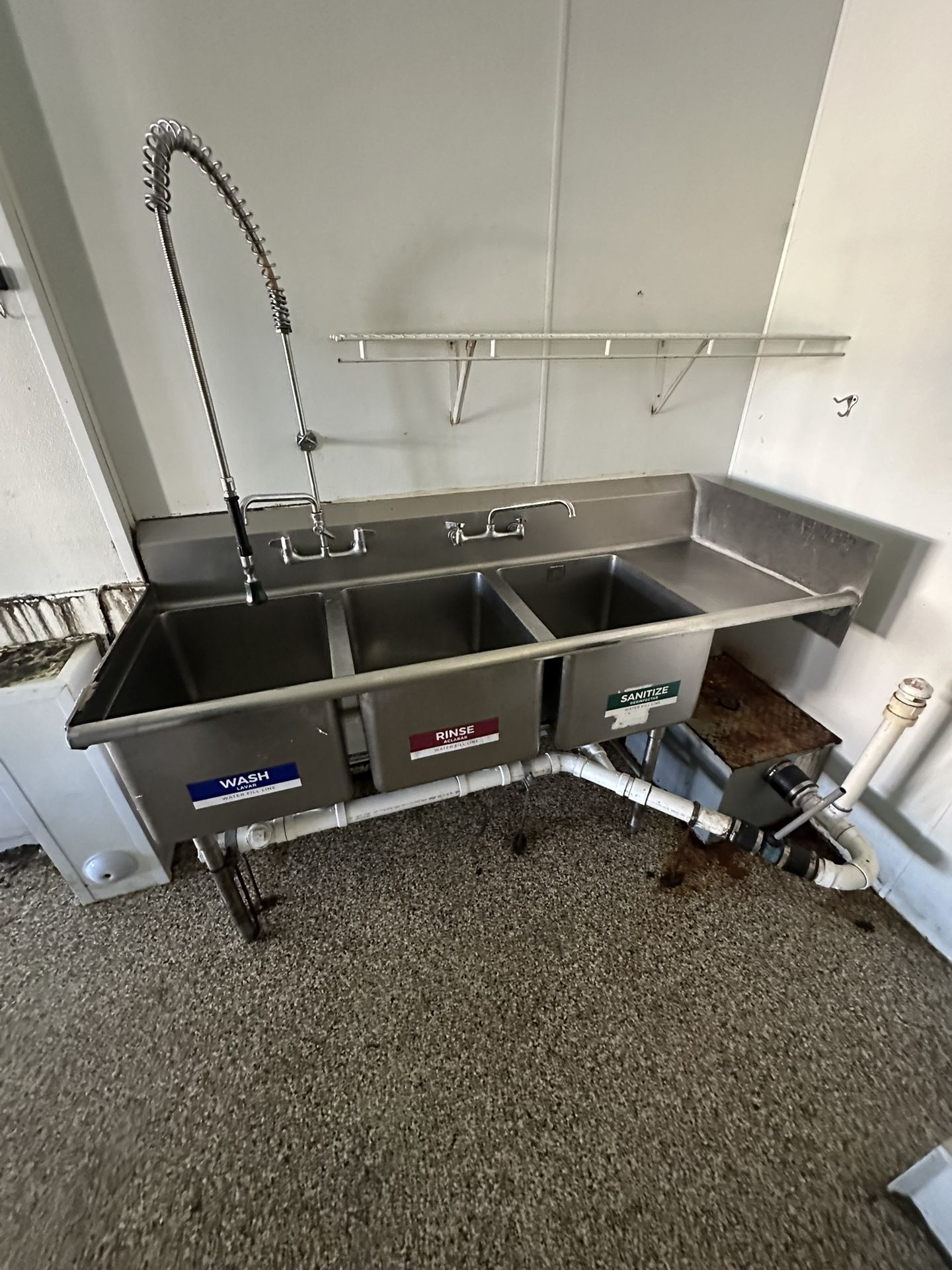 3 piece sink for sale with sprayer and two faucets. Only has one wing on the right side. Asking $200