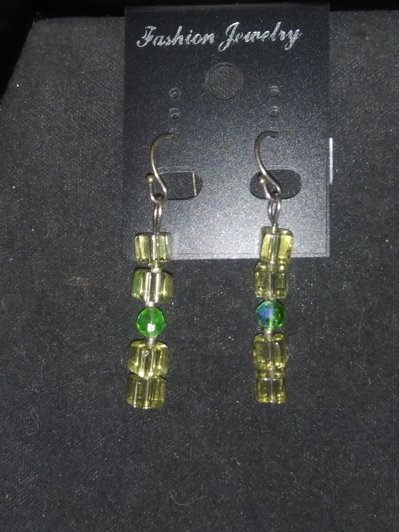 Handcrafted Green Clear Cubed Dangle Earring Silver New Condition!! **Bundle and save with combined shipping**