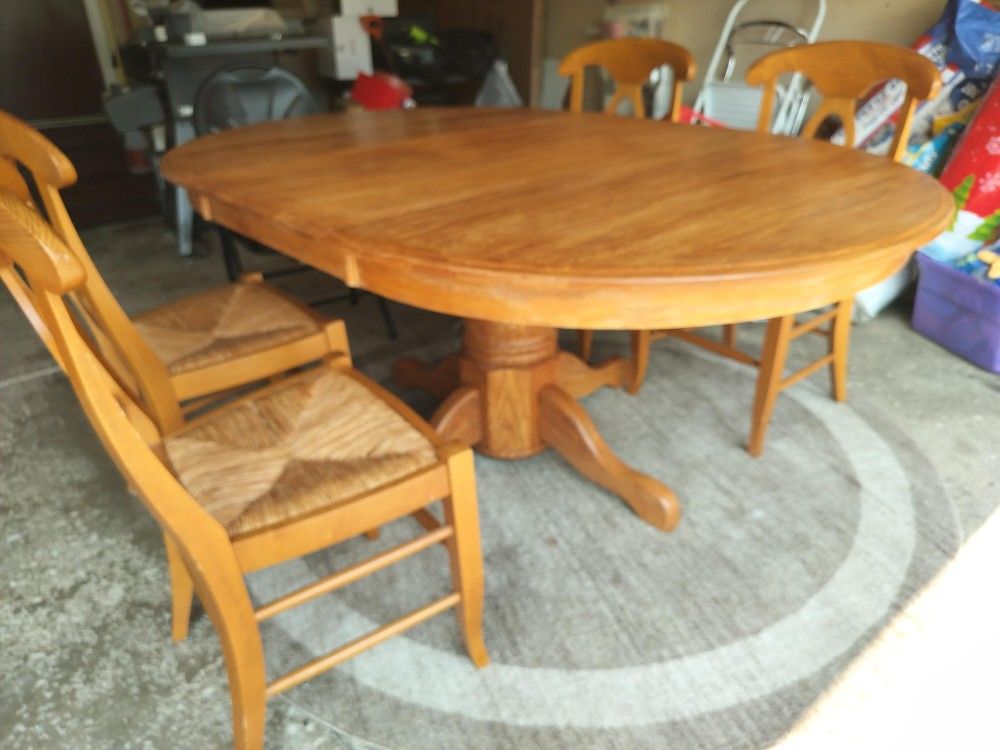 Oak table, recently painted, includes 4 chairs