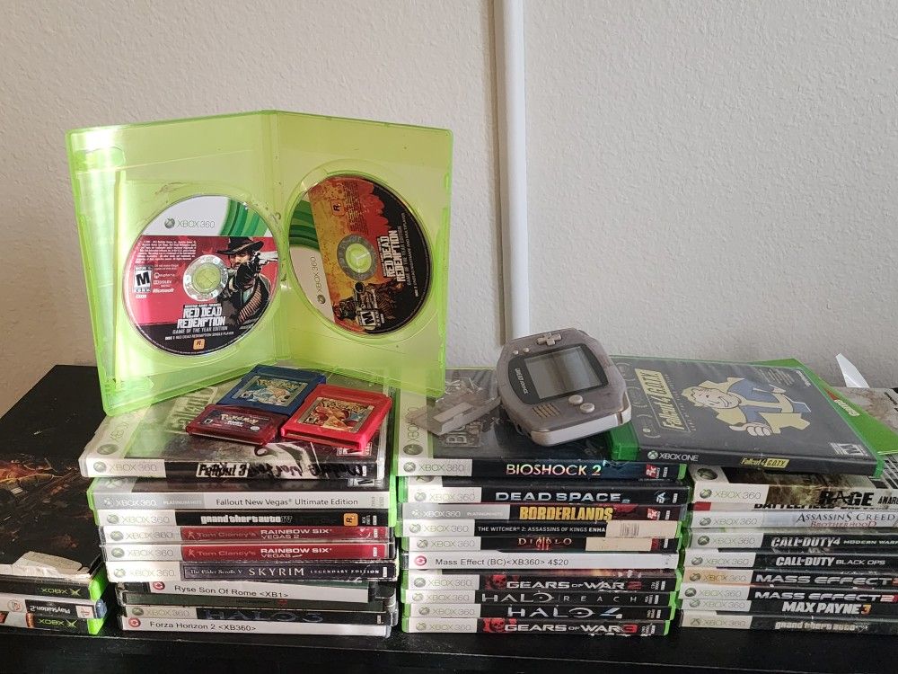 Xbox 360/vanilla Xbox/ GBA glacier edition/ games for all. DVD Retro Pokemon titles 360 titles Manhunt for Xbox DVDs
