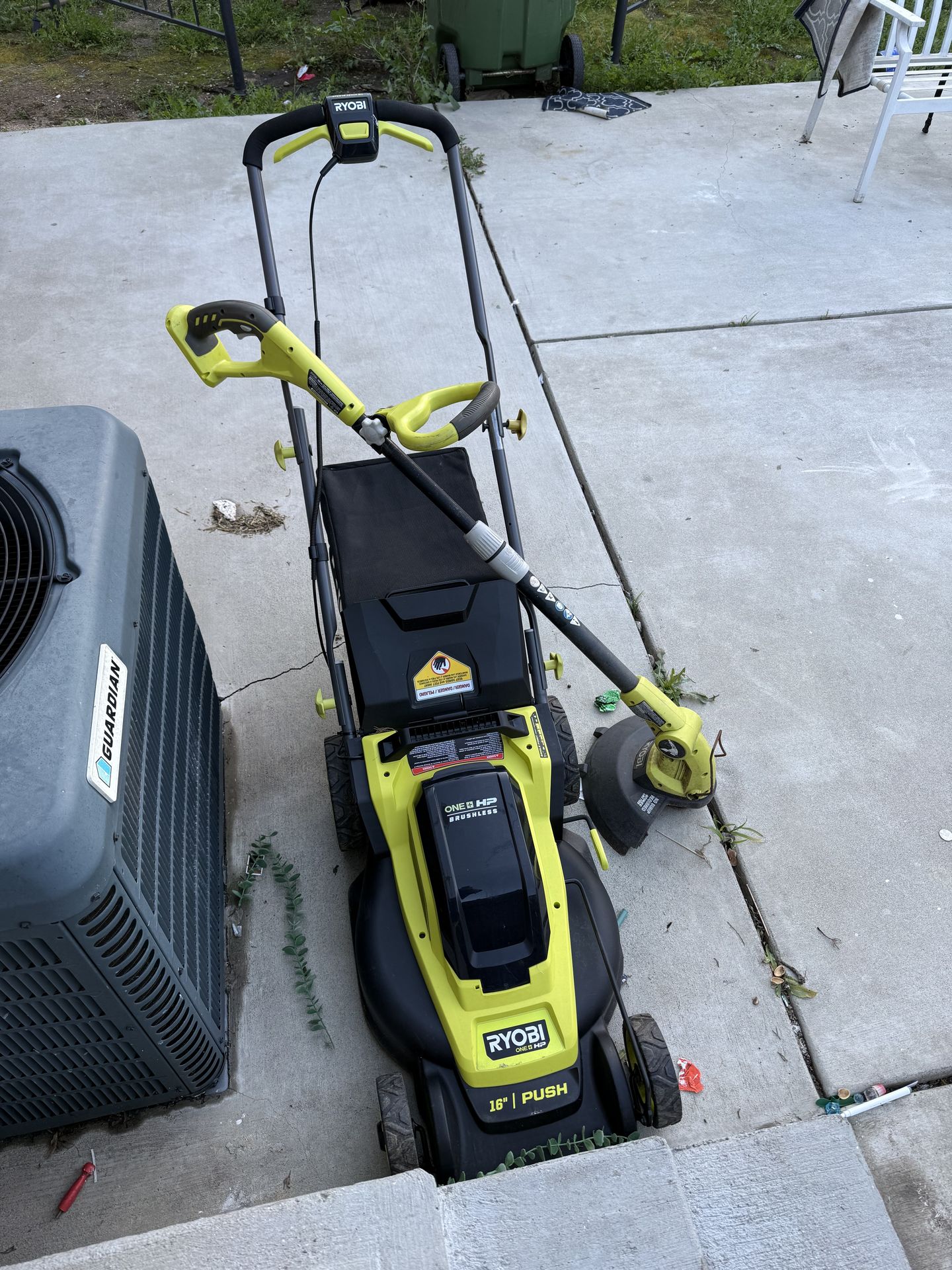 Ryobi Push Lawnmower ad weedwacker