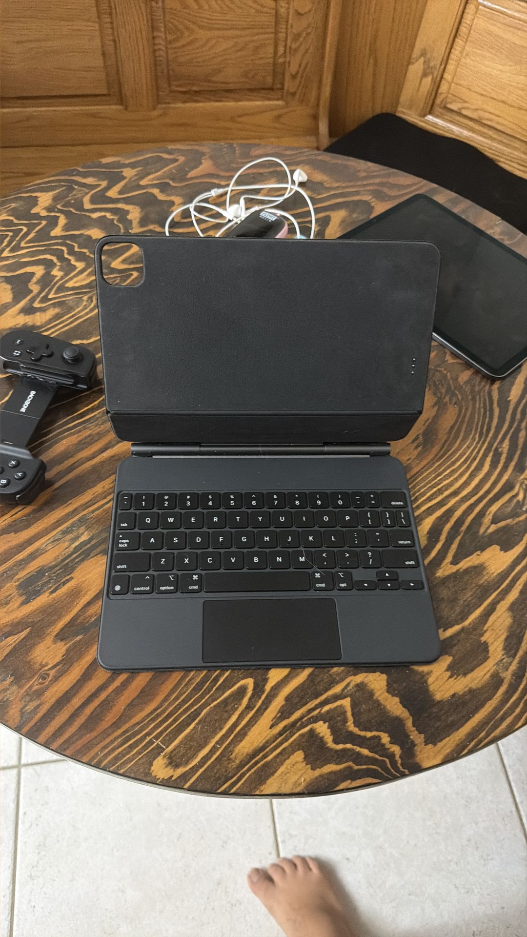 iPad Magic Keyboard case for 11 inch iPads. Works perfect just some scratches and slightly peeling near the bottom but otherwise works perfect. I’m trading in my iPad so I no longer need this case and Apple won’t give any money for trade in on accessories