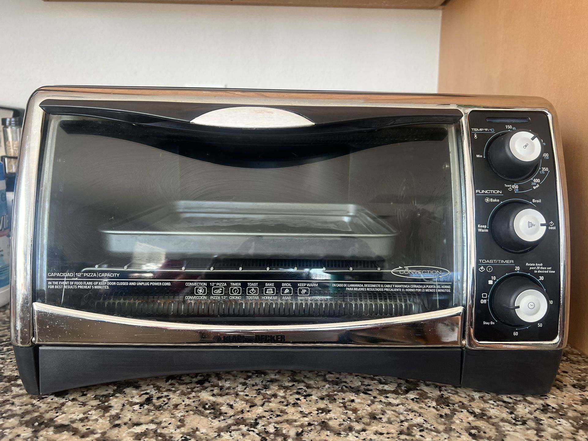 5-in-1. Warmer, Bake, Broil, Toast, Convection. Large interior for personal pizzas. Black & Decker. Used. Good Condition.