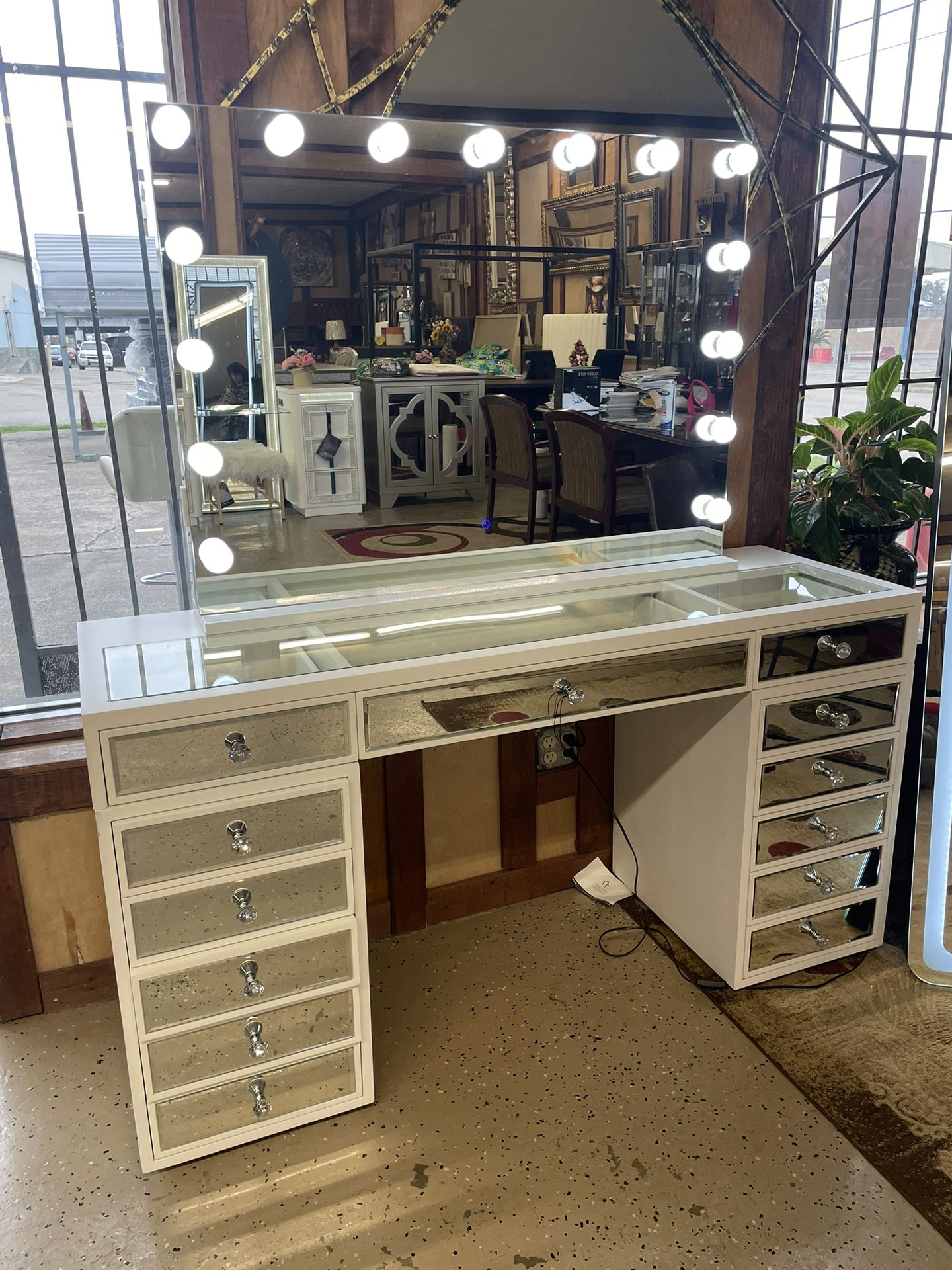 New Glamorous Makeup Vanity Features gem knobs, adjustable lighting, and a Hollywood style lighting $1090 or Reasonable offers Already put together, no need to assemble. Financing available Delivery available