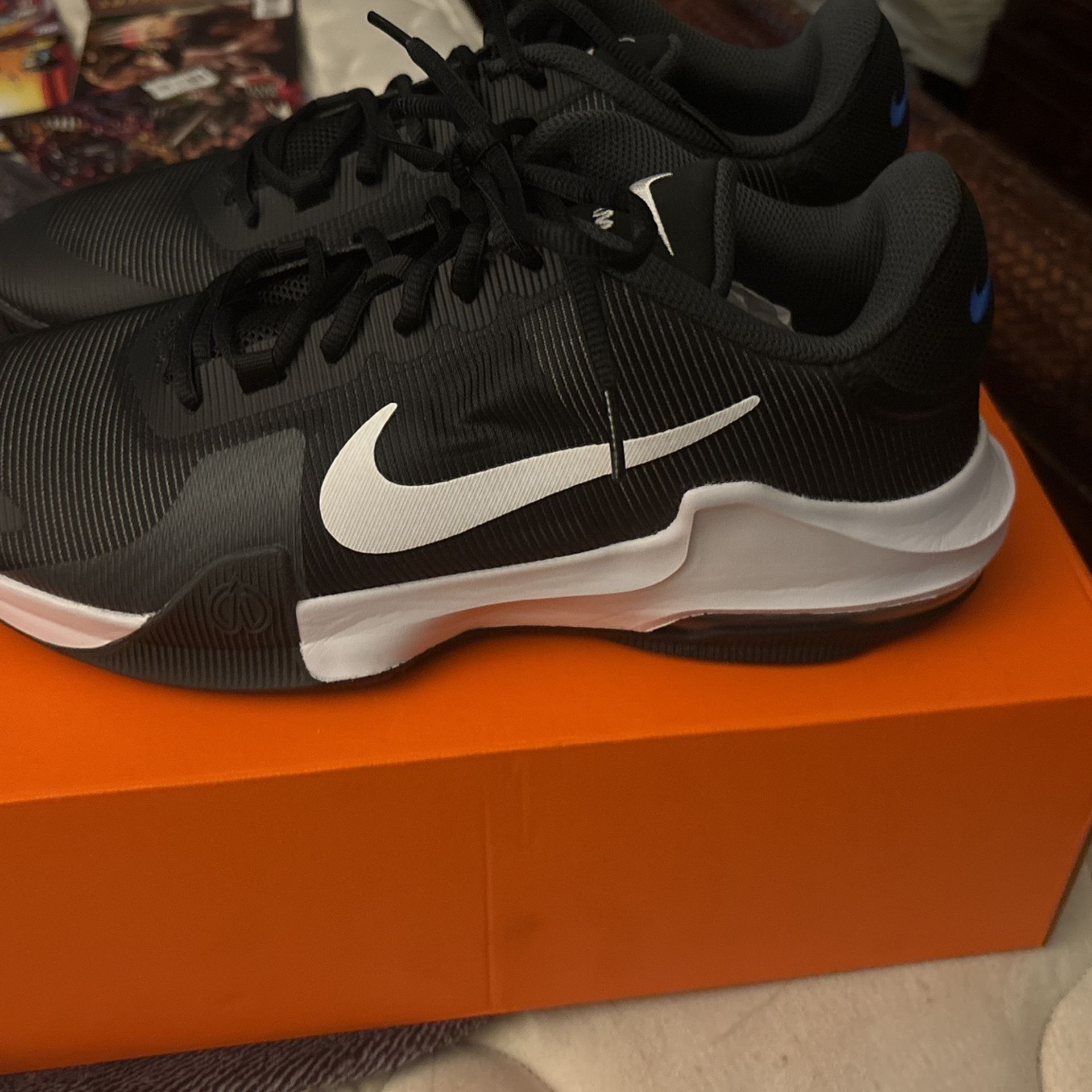 Brand new black & white with blue swoosh mens size 12 nike air max impact brand new in box