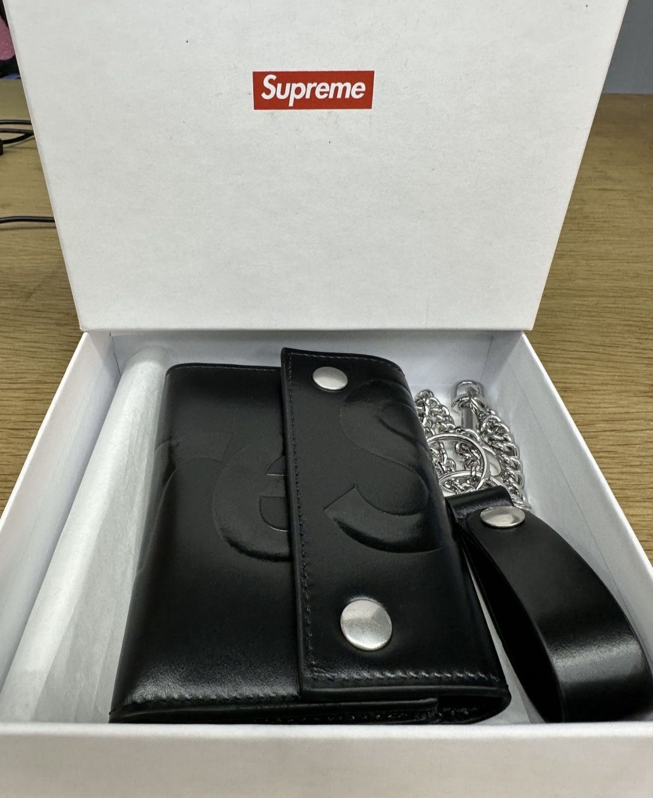 Supreme Leather Chain Wallet Black