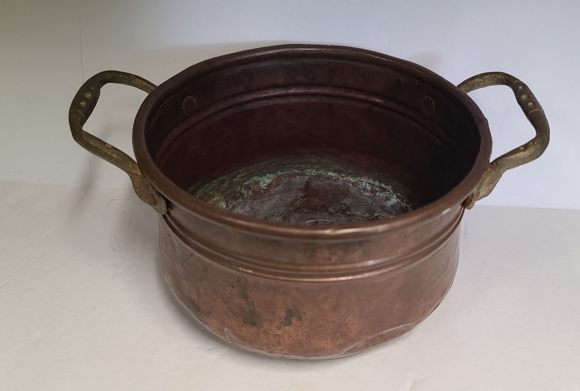Vintage Copper Pot With Brass Handles
